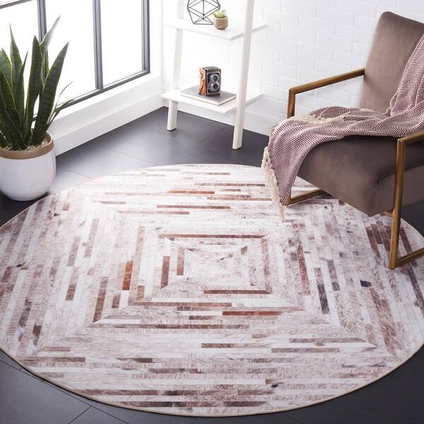Faux Hide Beige/Brown 4 ft. x 4 ft. Machine Washable Diamond Geometric Round Area Rug