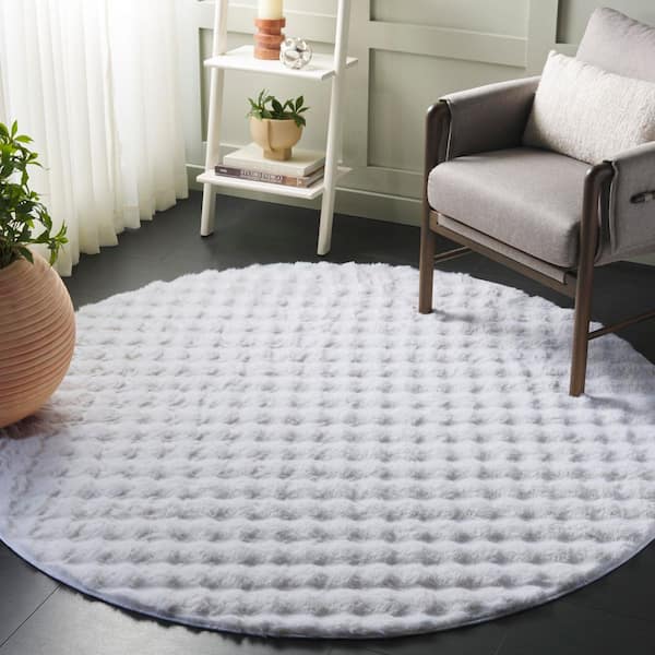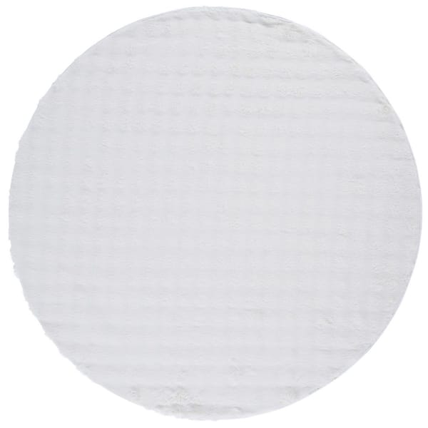 Faux Rabbit Bubble Ivory 6 ft. x 6 ft. Machine Washable Solid High-Low Round Area Rug