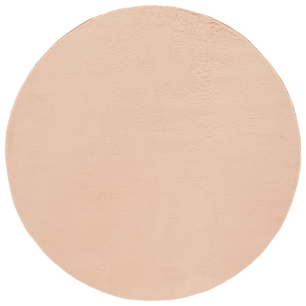 Faux Rabbit Fur Beige 4 ft. x 4 ft. Machine Washable Solid Color Flokati Round Area Rug