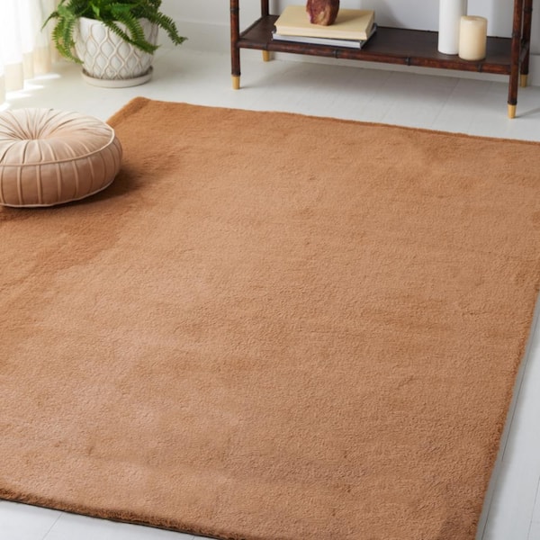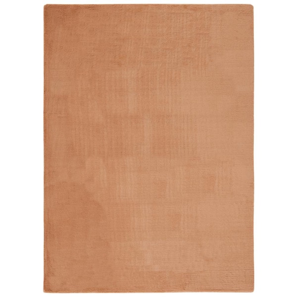 Faux Rabbit Fur Brown 4 ft. x 6 ft. Machine Washable High Low Brown Area Rug