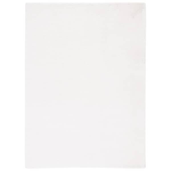 Faux Rabbit Fur Off White Doormat 3 ft. x 5 ft. Machine Washable High Low Solid Color Area Rug