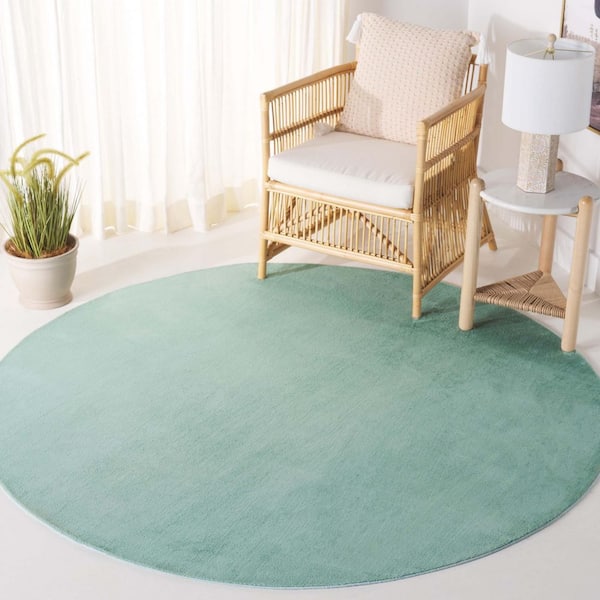 Faux Rabbit Fur Sage 6 ft. x 6 ft. Machine Washable Solid Flokati Round Area Rug
