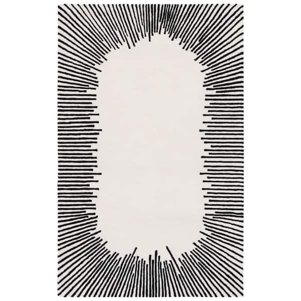 Fifth Avenue Ivory/Black 6 ft. x 9 ft. Border Geometric Area Rug