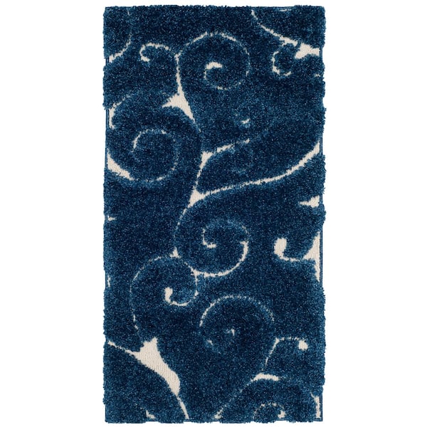 Florida Shag Dark Blue/Cream Doormat 2 ft. x 4 ft. Floral Area Rug