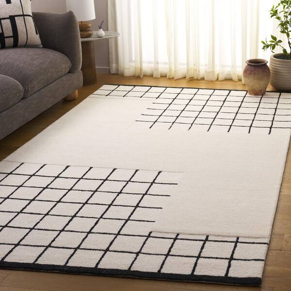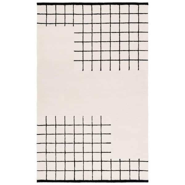Genre 3 ft. x 5 ft. Ivory/Black Border Isometric Area Rug