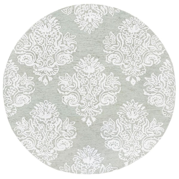 Glamour 6 ft. x 6 ft. Sage/Ivory Floral Diamond Round Area Rug