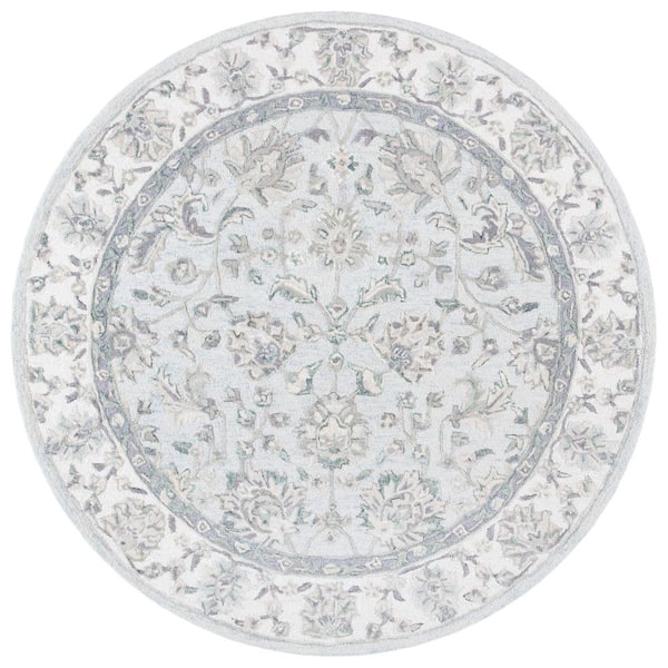 Glamour Light Blue/Ivory 6 ft. x 6 ft. Floral Border Round Area Rug