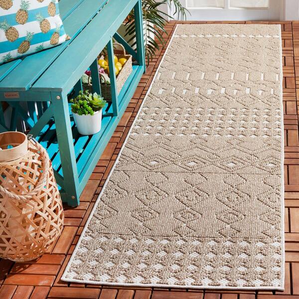 Global Beige/Ivory 2 ft. x 8 ft. Diamond Geometric Indoor/Outdoor Runner Rug