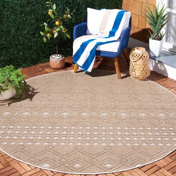Global Beige/Ivory 7 ft. x 7 ft. Diamond Geometric Indoor/Outdoor Round Area Rug