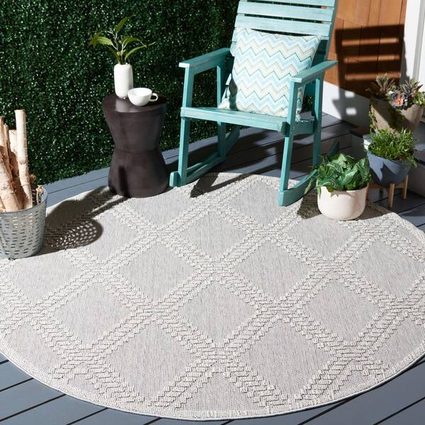 Global Gray/Light Gray 5 ft. x 5 ft. High-Low Diamond Round Indoor/Outdoor Area Rug