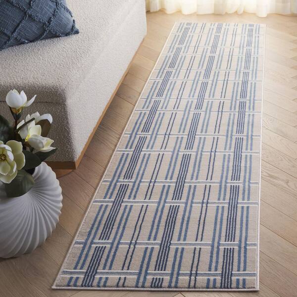 Groove 2 ft. x 8 ft. Beige/Blue Geometric Lattice Runner Rug