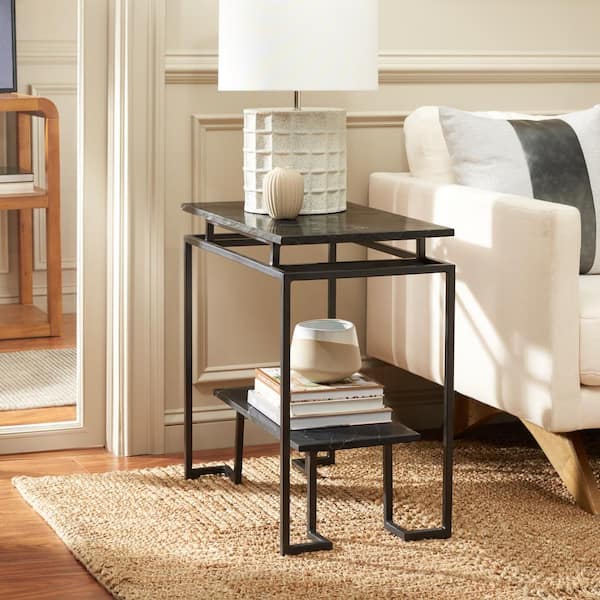 Guernica 24 in. Black Rectangle Metal End Table with Shelves