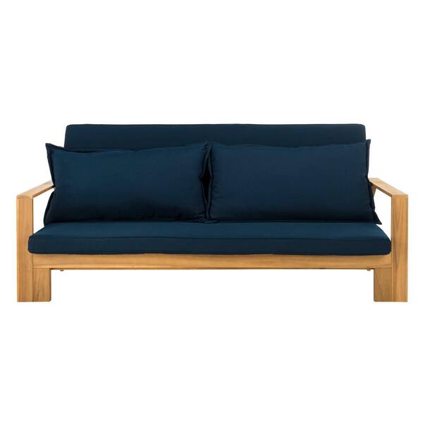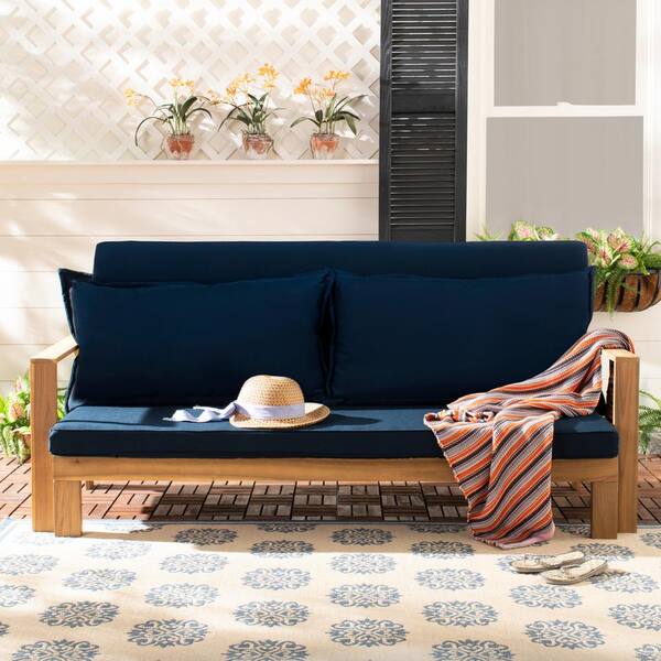 Hammett Natural Brown 1-Piece Wood Outdoor Day Bed with Navy Cushions