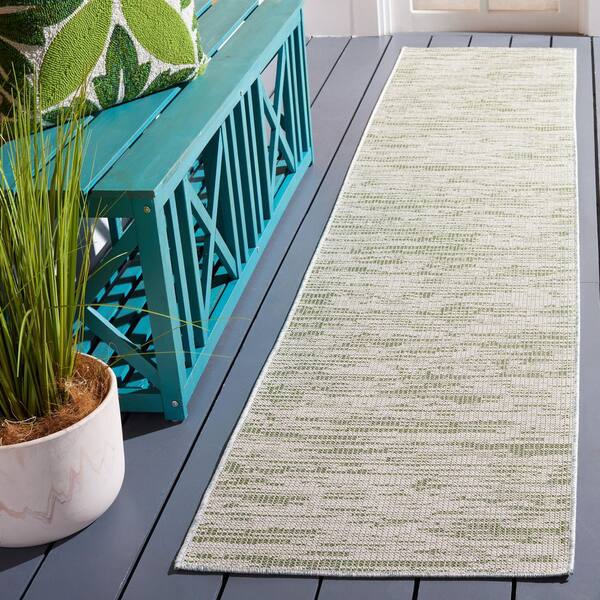 Hampton Green/Beige 2 ft. x 9 ft. Abstract Distressed Indoor/Outdoor Runner Rug