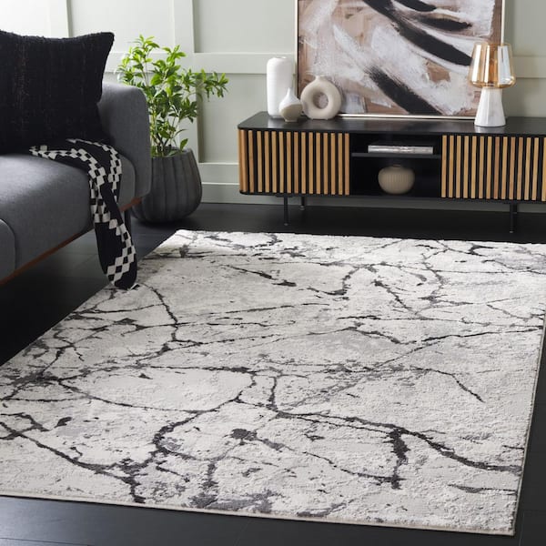 Hanna 7 ft. x 7 ft. Gray/Ivory Dark Gray Abstract Marble Square Area Rug