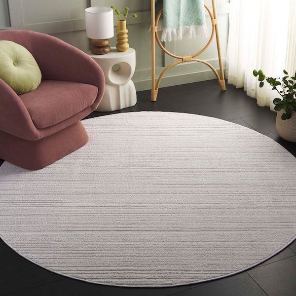 Harmony 7 ft. x 7 ft. Ivory Solid Striped Round Area Rug