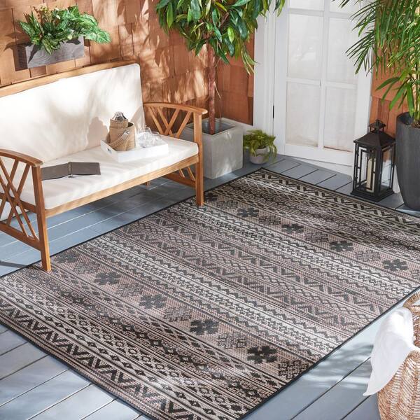 Havana Brown/Black 7 ft. x 7 ft. Tribal Aztec Indoor/Outdoor Square Area Rug
