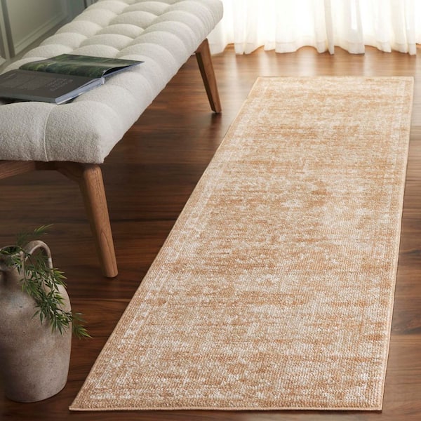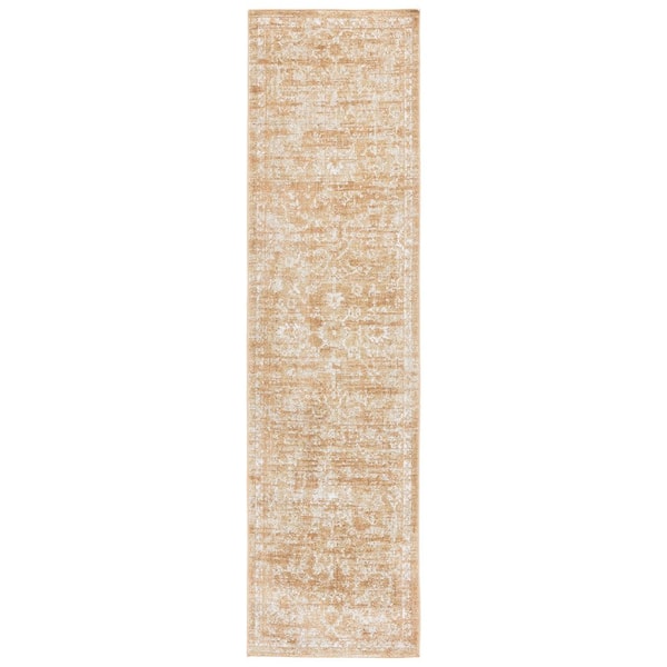Hazel 2 ft. x 8 ft. Gold/Ivory Distressed Abstract Floral Runner Rug