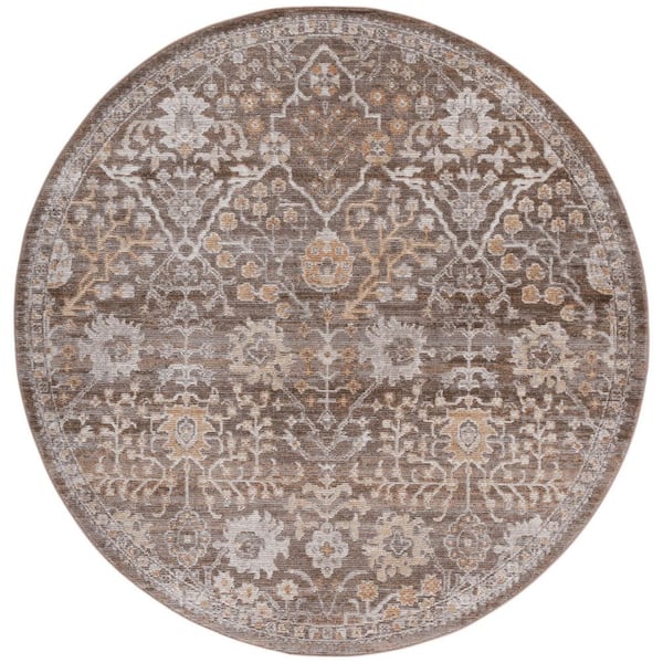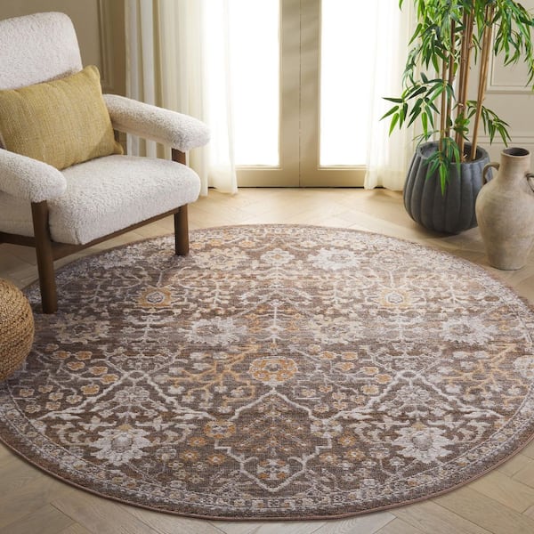 Hazel 6 ft. x 6 ft. Brown/Ivory Traditional Floral Ornate Round Area Rug