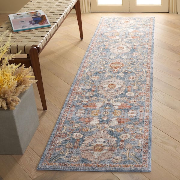 Heirloom 2 ft. x 8 ft. Gray/Blue Rust Border Distressed Runner Rug