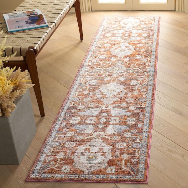 Heirloom 2 ft. x 8 ft. Rust/Blue Border Distressed Runner Rug