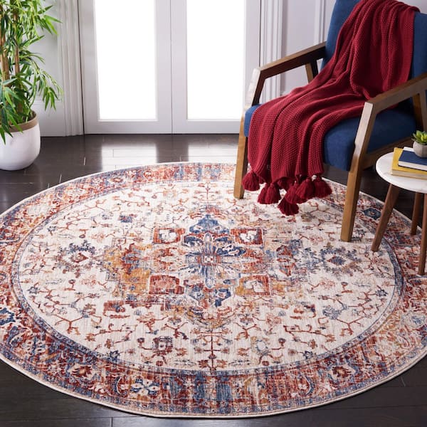Heirloom 7 ft. x 7 ft. Ivory/Blue Rust Border Distressed Round Area Rug