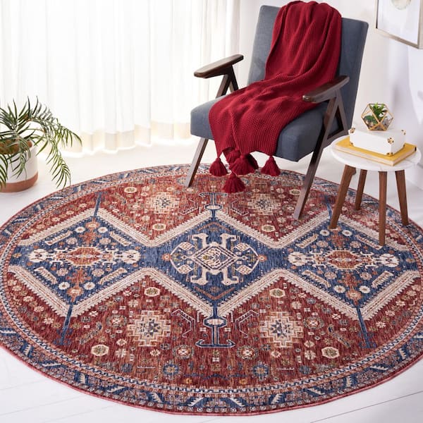 Heirloom 7 ft. x 7 ft. Navy/Rust Border Distressed Round Area Rug