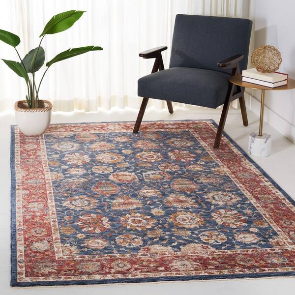 Heirloom 9 ft. x 12 ft. Navy/Rust Border Floral Area Rug