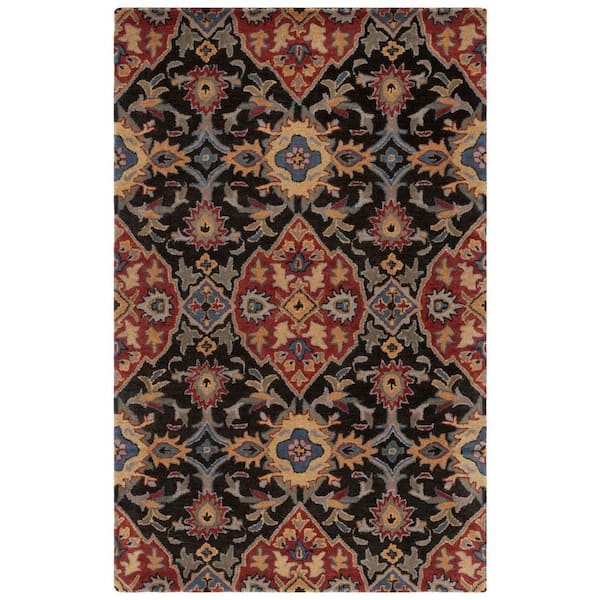 Heritage Charcoal/Red 8 ft. x 10 ft. Ornate Geometric Area Rug