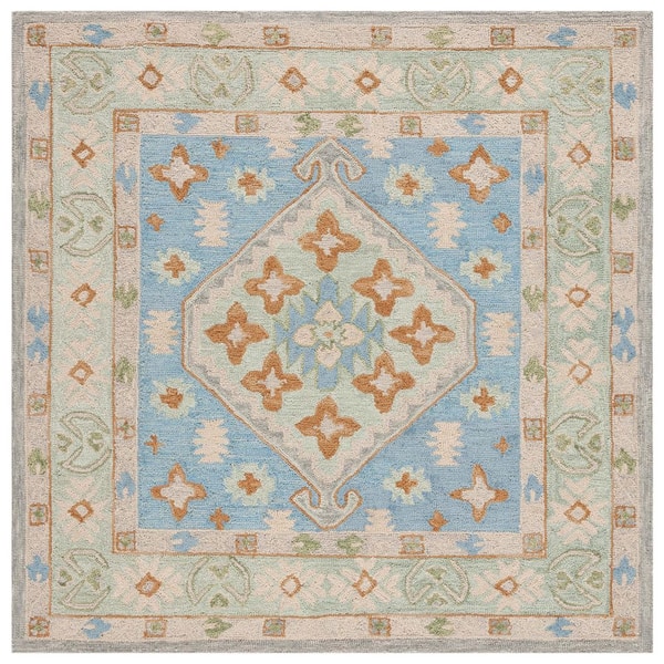 Heritage Green/Ivory 6 ft. x 6 ft. Border Floral Square Area Rug