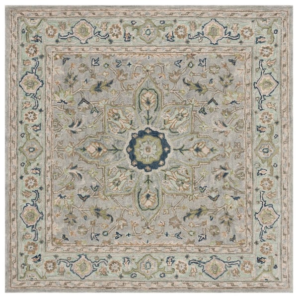 Heritage Ivory/Blue 6 ft. x 6 ft. Border Floral Square Area Rug