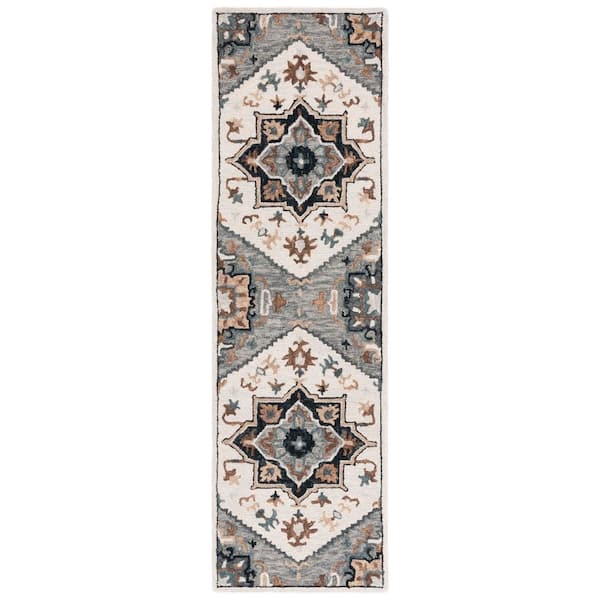 Heritage Ivory/Gray 2 ft. x 8 ft. Floral Medallion Runner Rug