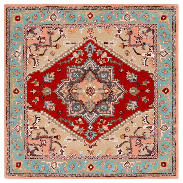 Heritage Red/Pink 6 ft. x 6 ft. Border Floral Medallion Square Area Rug