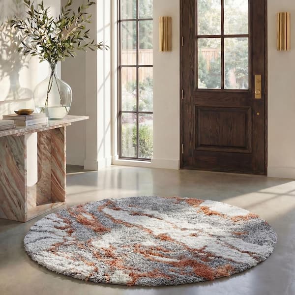Horizon 7 ft. x 7 ft. Gray/Rust Abstract Round Rug