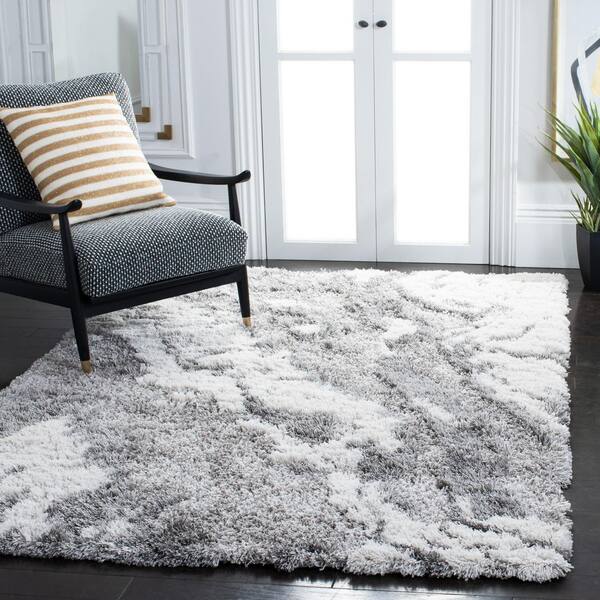 Horizon Shag Gray/Ivory 4 ft. x 4 ft. Abstract Marble Square Area Rug
