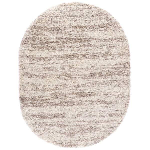 Hudson Shag 4 ft. x 6 ft. Ivory/Beige Marble Oval Area Rug