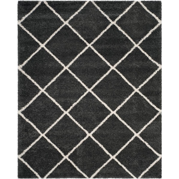 Hudson Shag Dark Gray/Ivory 8 ft. x 10 ft. Geometric Diamonds Area Rug