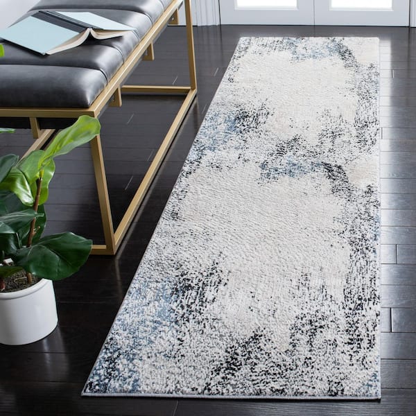 Invista 2 ft. x 8 ft. Ivory/Gray Abstract Distressed Runner Rug
