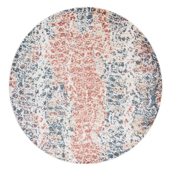 Invista 7 ft. x 7 ft. Navy/Rust Distressed High-Low Round Area Rug