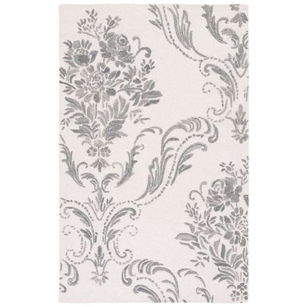 Jardin Ivory/Grey Doormat 3 ft. x 5 ft. Floral Solid Color Area Rug