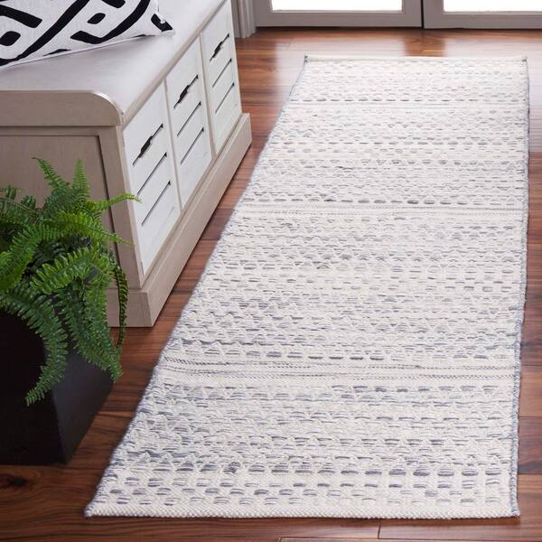 Kilim 2 ft. x 8 ft. Ivory/Dark Gray Chevron Striped Runner Rug