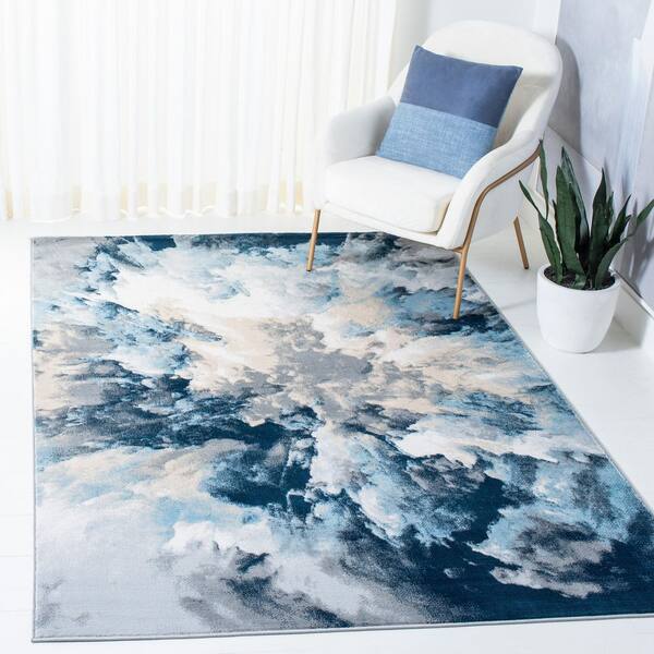 Lagoon Blue/Beige 7 ft. x 7 ft. Abstract Gradient Square Area Rug