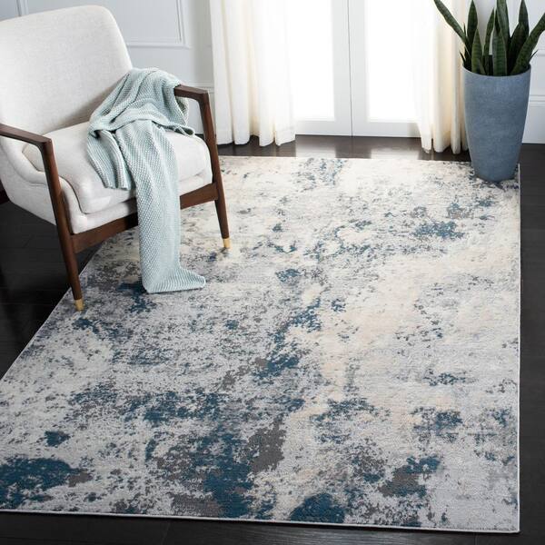 Lagoon Gray/Turquoise 5 ft. x 8 ft. Geometric Distressed Area Rug