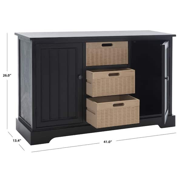 Landers 13.4 in. Black Natural Rectangle Wood Console Table with Drawer