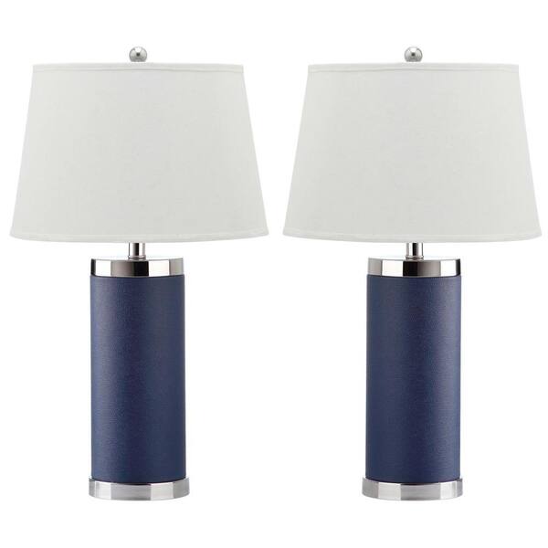 Leather Column 26 in. Navy Table Lamp with White Shade (Set of 2)