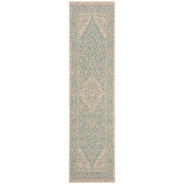 Linden Aqua/Cream 2 ft. x 8 ft. Border Antique Medallion Runner Rug