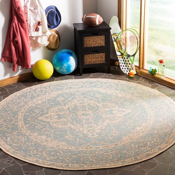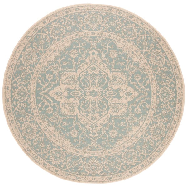 Linden Aqua/Cream 7 ft. x 7 ft. Round Antique Medallion Border Area Rug
