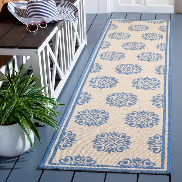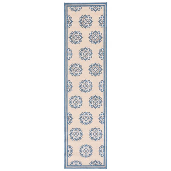 Linden Blue/Cream 2 ft. x 8 ft. Border Multi-Florals Indoor/Outdoor Runner Rug