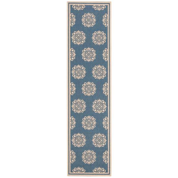 Linden Cream/Blue 2 ft. x 8 ft. Border Multi-Florals Runner Rug