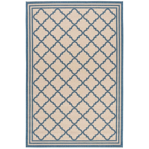 Linden Cream/Blue 4 ft. x 6 ft. Border Geometric Trellis Area Rug